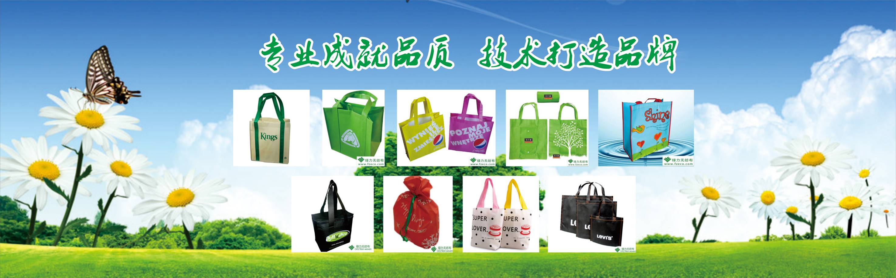 公司生產的主要產品是環(huán)保包袋,有無紡布袋、帆布袋、麻布袋三大類,具體有無紡布袋、復膜無紡布袋、商場超市購物袋、無紡布環(huán)保袋、美植袋、植樹袋、育苗袋、水果套袋、無紡布廣告袋、資料袋、宣傳袋、禮品袋、尼龍袋、牛津布袋、帆布袋棉布袋、絨布袋、草莓袋、文件袋、各式包裝袋、防潮袋、索繩袋、背包袋、廣告圍裙、西服袋、婚紗袋等布料制品。